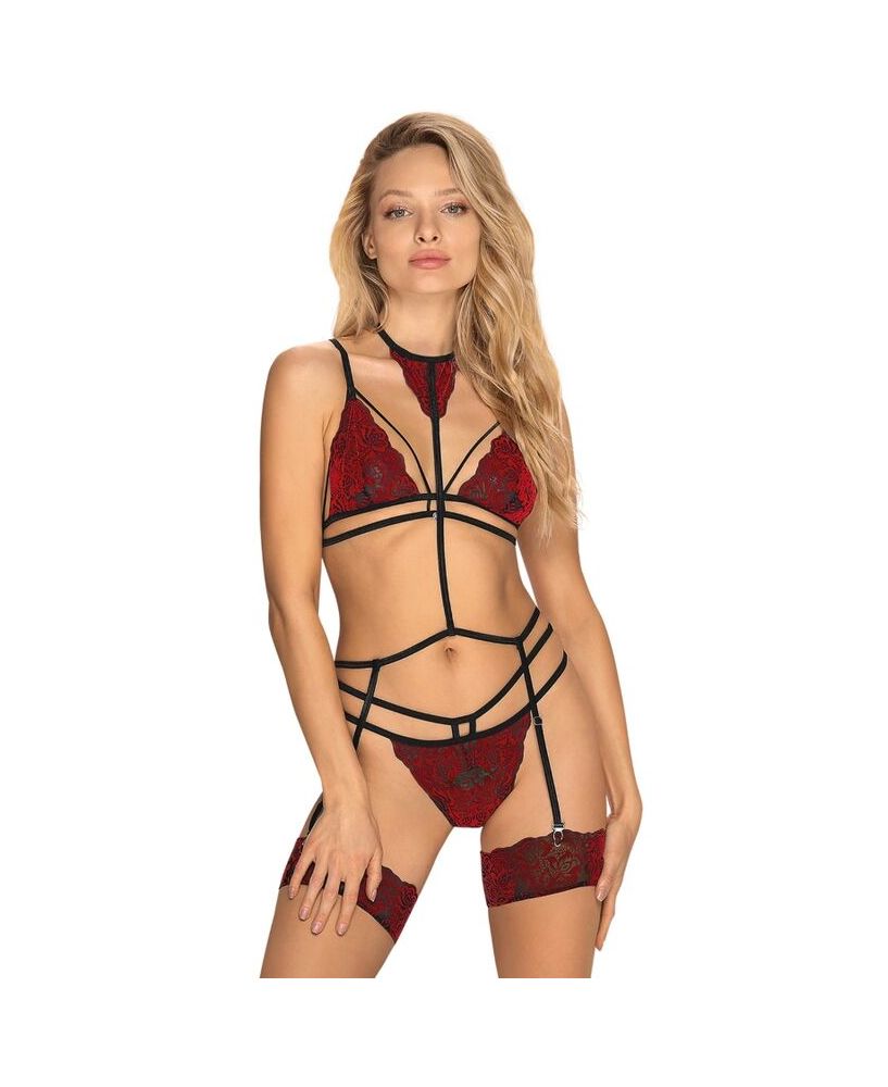 Oh, va a hacer calor ... La temperatura aumentará gracias a Sugestina: te garantizará una acentuación excepcional de las caderas y un énfasis tentador de los senos. Tu nuevo set favorito es un patrón floral aterciopelado de color burdeos con la adición de negro. La audaz combinación de correas junto con la sensual gargantilla añaden aún más sabor. ¡Una verdadera bomba sexual!