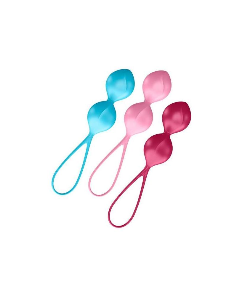 El entrenamiento perfecto para tu suelo pélvico y tu vida amorosa El entrenamiento siempre resulta más divertido cuando se pueden medir los progresos, por ello este lujurioso set incluye directamente 3 bolas de placer: las tres tienen el mismo tamaño, con un diámetro de 3,4 cm, pero varían en el peso.
