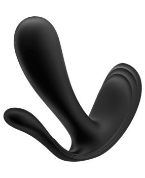 SATISFYER TOP SECRET + Top Secret estimula el punto G con su eje grande y curvo y sus intensas vibraciones. El vibrador portátil cuenta con una base plana y ergonómica que garantiza la máxima comodidad. El eje tiene un diámetro máximo de tres cm. Top Secret + tiene un eje extra para la estimulación anal con un diámetro de uno con siete cm.