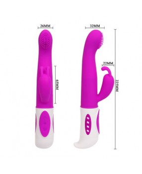 Este vibrador es un juguete ergonómico de última tecnología ya que está dotado de un estimulador de clítoris y otro de punto G, este último oscilante.